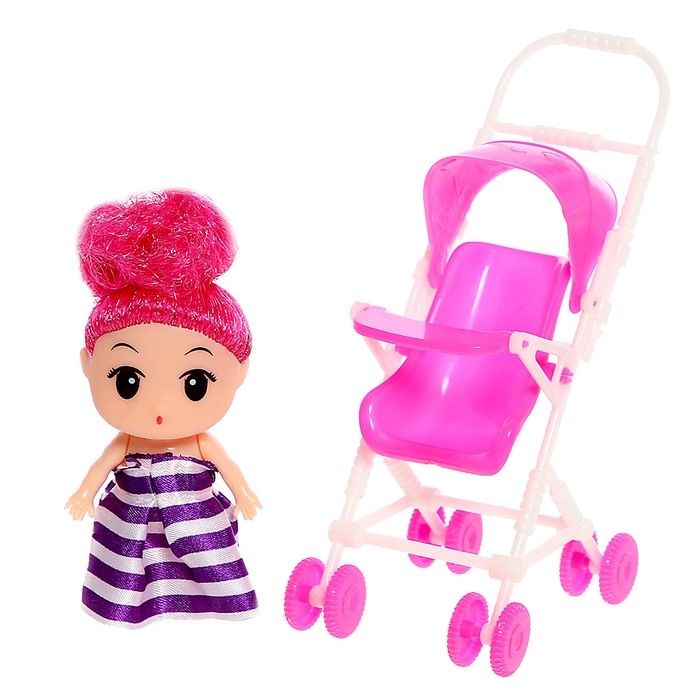 - Высота коляски — 13 см. Колёсики крутятся. С ней игровые сюжеты станут ещё разнообразнее!