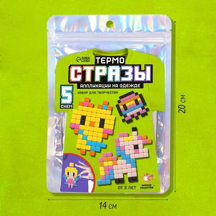 Стразы термоклеевые для ткани с трафаретами «Пиксели», набор для творчества