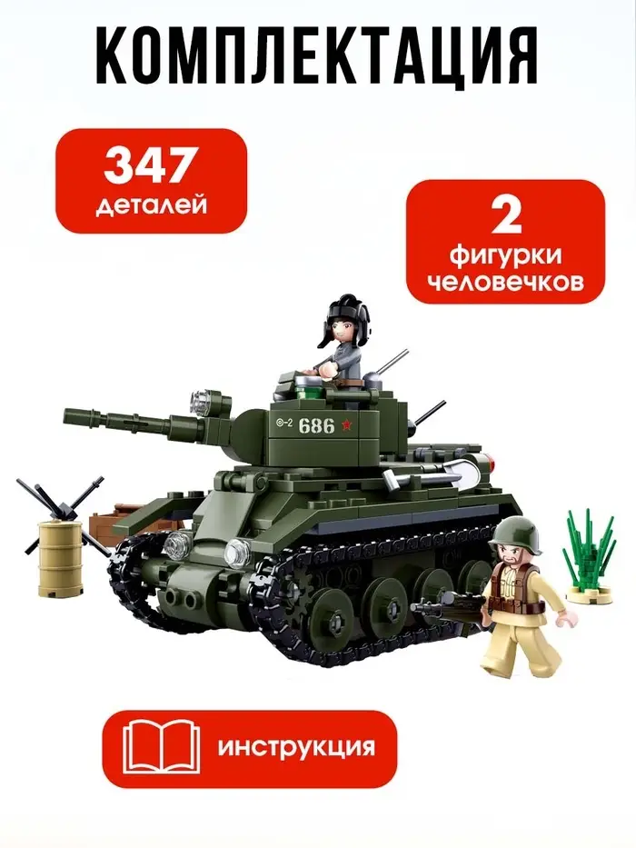 - Набор включает 347 деталей для создания модели танка.