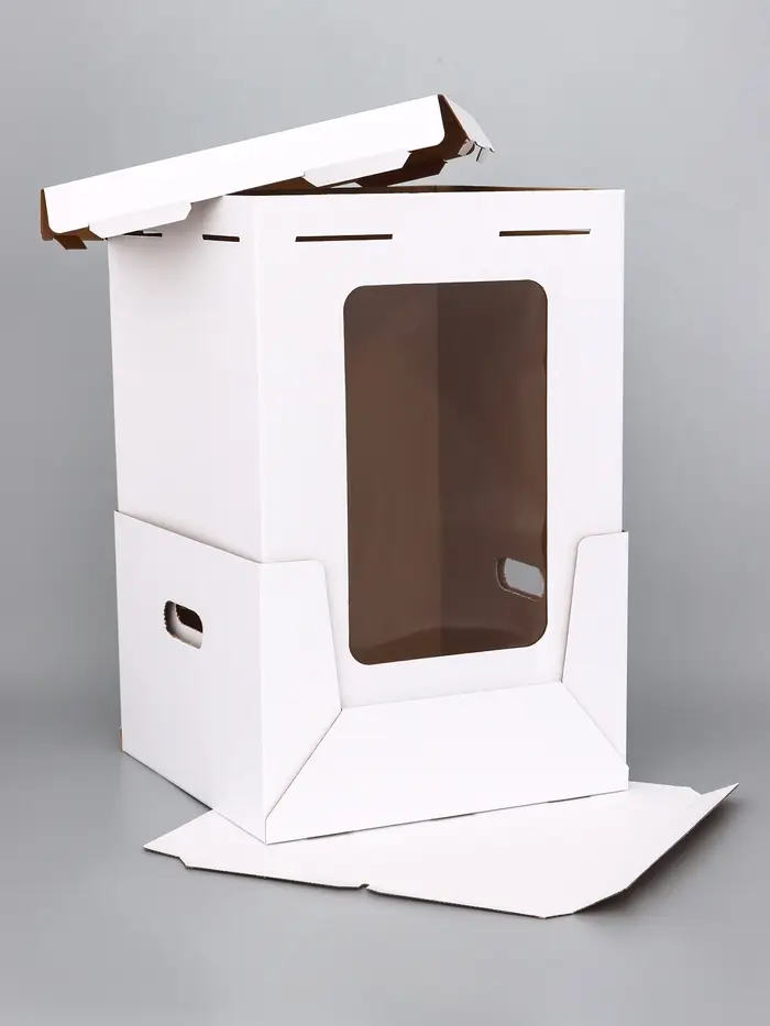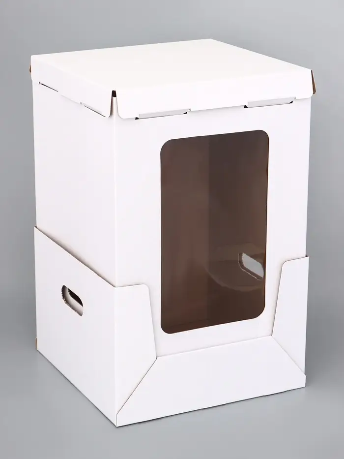 Профессиональная упаковка для тортов на высоких подставках! Большая коробка для торта с окном — это надежное решение для кондитеров и праздничных заказов. Высокие стенки и окно на крышке обеспечивают сохранность десерта и его эффектную презентацию.
