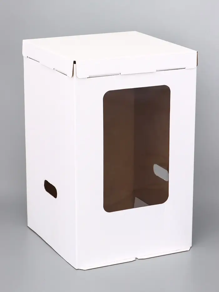 Коробка под торт, белая, с окном, 32.5×32.5×45 см
