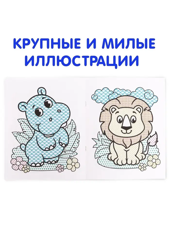 Книга выполнена из плотной бумаги. Внутри есть 8 рисунков для раскрашивания. Малыш будет заполнять различные элементы изображения, потренирует моторику и внимание.