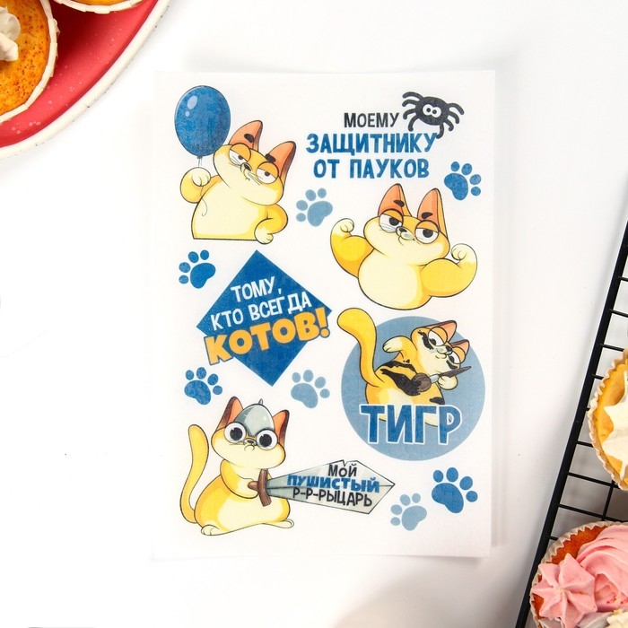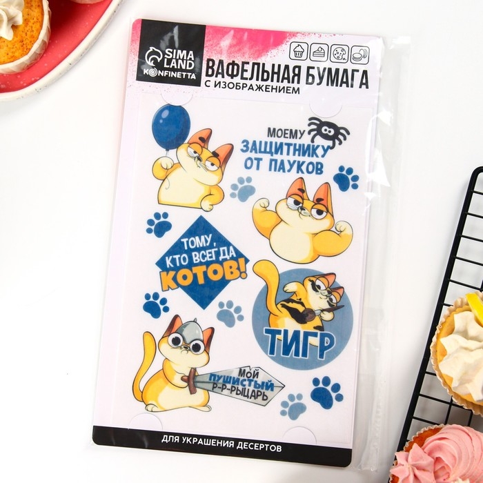 Вафельные картинки съедобные «Моему защитнику» для капкейков, торта KONFINETTA, 1 лист А5