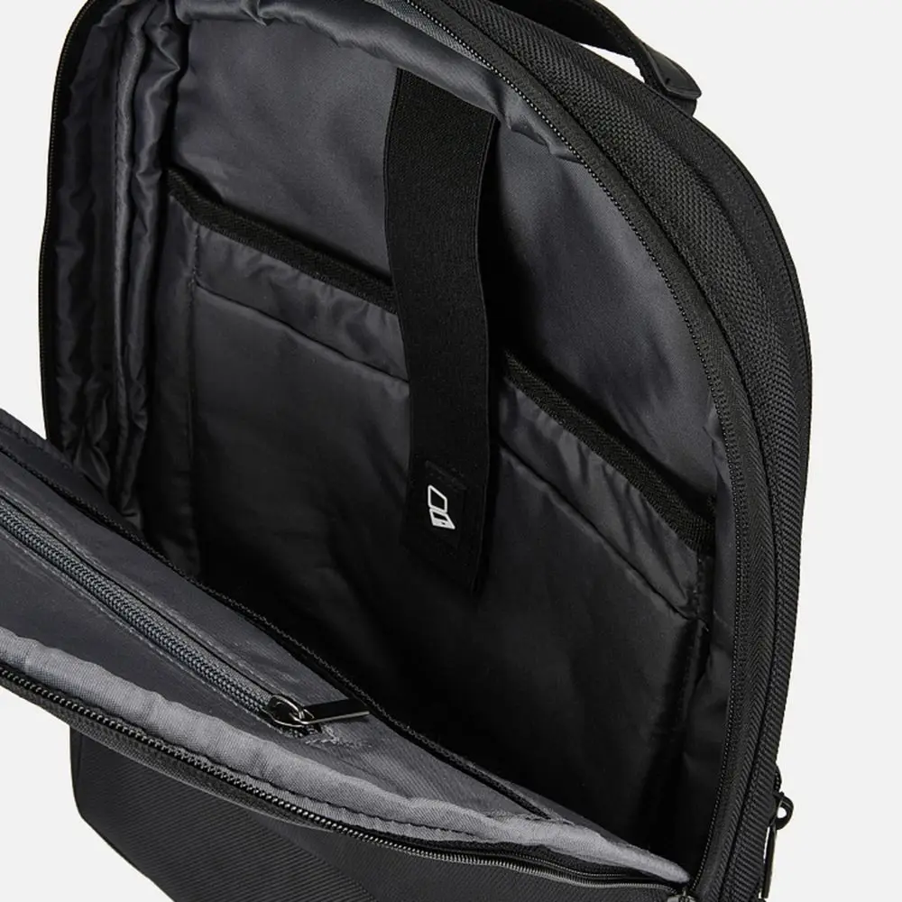 Рюкзак вмещает ноутбук до 15,6 дюймов, а также планшет, для которого предусмотрен отдельный карман. При желании объем рюкзака можно существенно увеличить с помощью молнии.