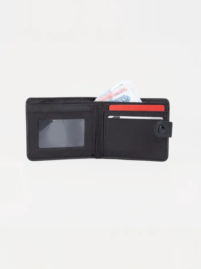 Это чёрное портмоне создаёт ощущение надёжности в повседневном использовании. Оно подходит мужчинам, которые ценят простоту и уверенность в сохранности своих платежных средств.