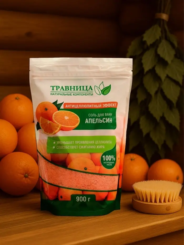 Соль для ванны «Травница», антицеллюлитный эффект, апельсин, 900 г