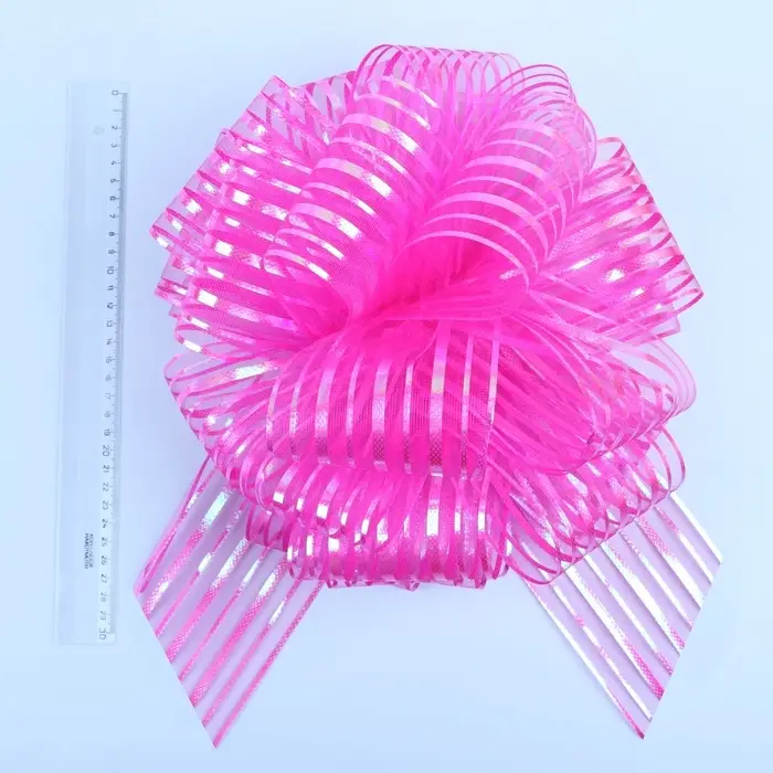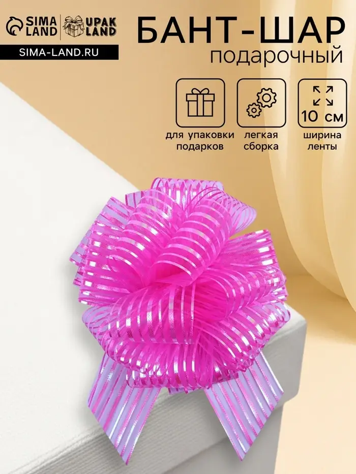 Подарочный бант - шар №10 «Полоски», ярко - розовый, для упаковки подарков