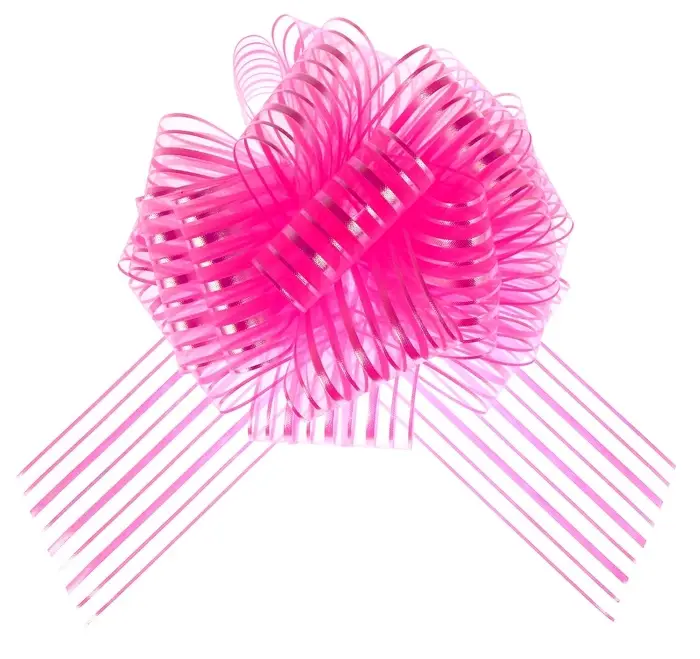 - Сочный оттенок с перламутром: Ярко-розовый цвет переливается на свету, но не выглядит кислотным. Такой бант выделит коробку среди других подарков на дне рождения или юбилее.