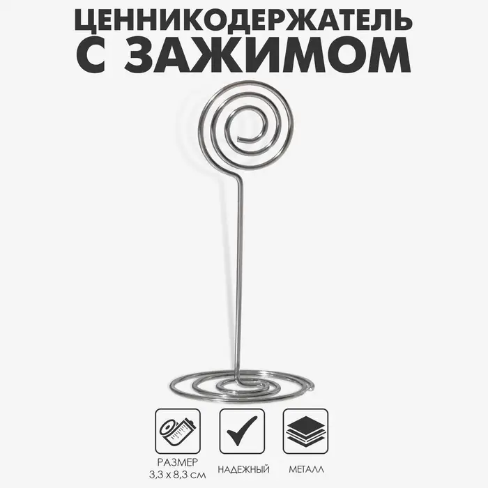 Откройте для себя идеальное решение для оформления ценников и рекламных материалов — настольную подставку с зажимом в элегантном серебристом цвете. Компактные размеры 3,3×3,3×8,3 см делают её незаменимой для использования в магазинах, кафе и офисах, где важна каждая деталь.