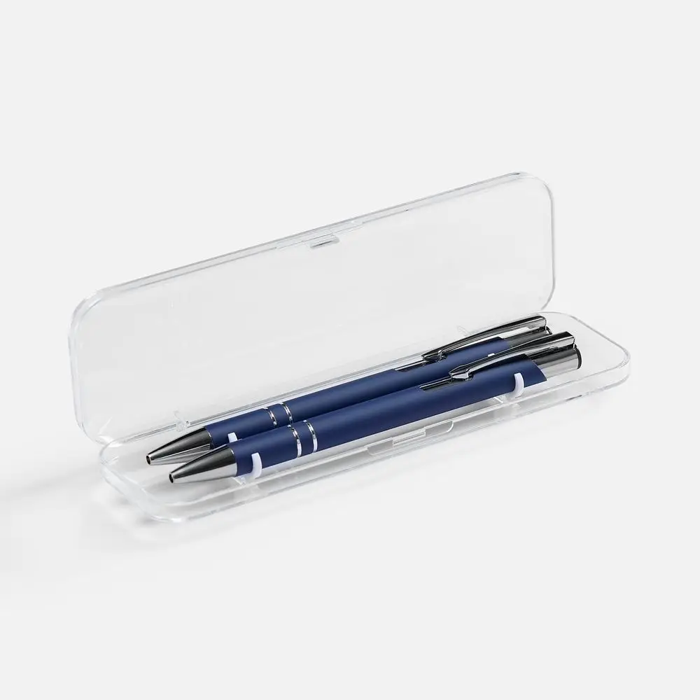Набор из двух ручек Keskus с покрытием софт-тач в прозрачном пластиковом футляре.