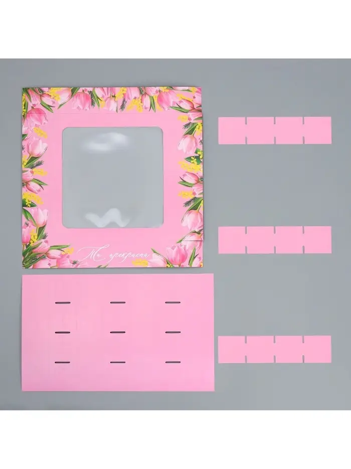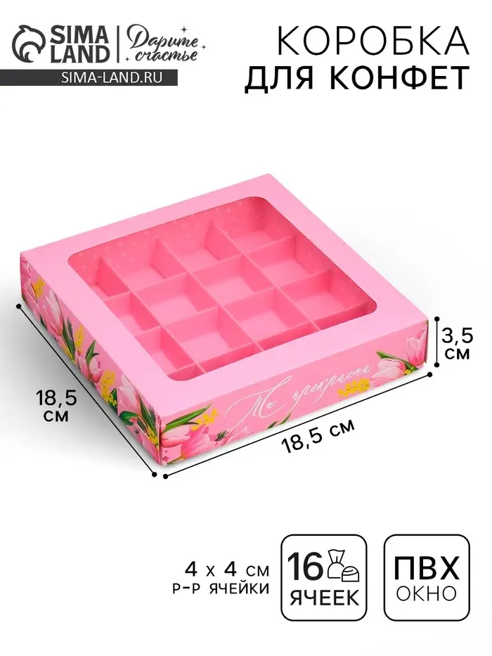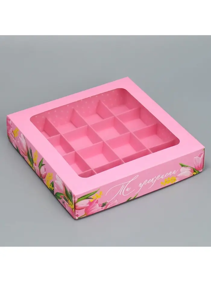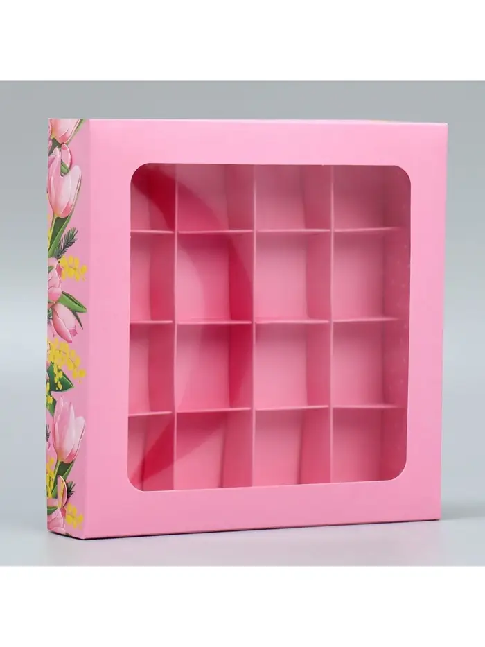 Коробка для конфет, кондитерская упаковка, 9 ячеек, «С 8 Марта» 14.5×14.5×3.5 см