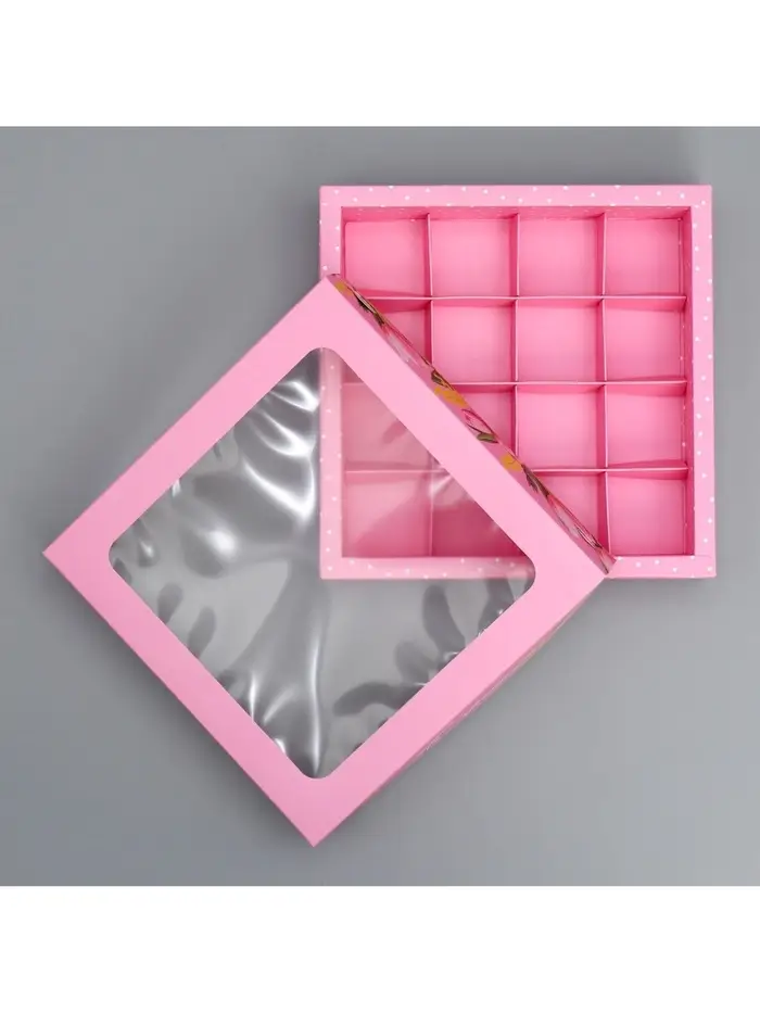 Коробка для конфет, кондитерская упаковка, 16 ячеек «От всего сердца», 18.9×18.9×3.8 см