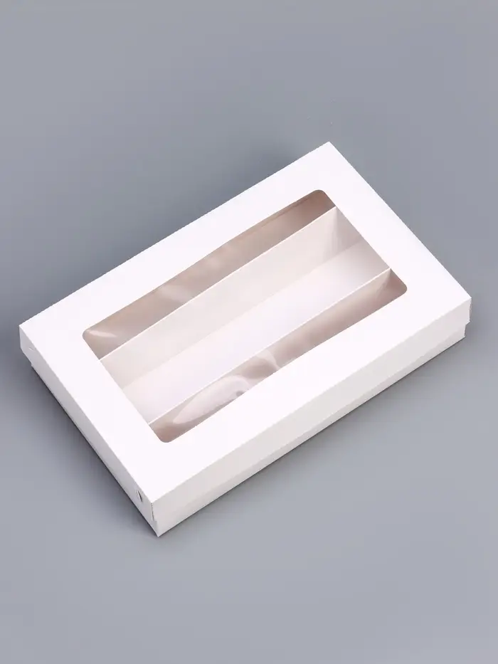 Как устроена: Коробка состоит из картонной основы с крышкой и пластикового ложемента, вкладываемого внутрь. Ложемент выполнен из прозрачного пищевого пластика, имеет ячейки круглой или овальной формы. Количество и расположение ячеек стандартизировано под макаронс. Картон плотный, держит форму. Коробка поставляется в плоском виде, собирается без клея. Белая коробка для макаронс с ложементом решает главную проблему кондитеров: как доставить хрупкие десерты в целости, сохранив презентабельный вид. Ячейки фиксируют каждое пирожное, белый цвет выглядит профессионально, а прозрачный пластик демонстрирует содержимое. Берите для макаронс, конфет и пирожных — ваши десерты доедут в идеальном состоянии.