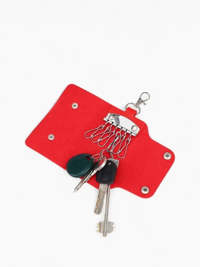 Этот органайзер для ключей с семью карабинами помогает навести порядок в связках и делает поиск нужного ключа мгновенным. Насыщенный красный цвет добавляет практичному аксессуару яркий акцент.