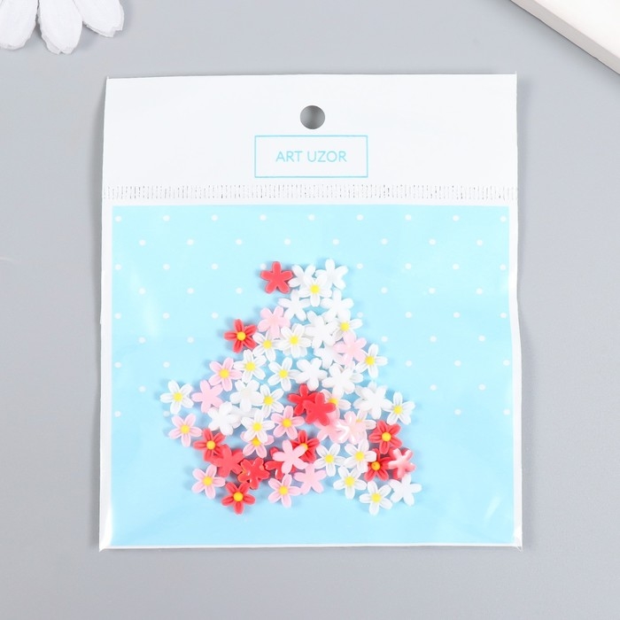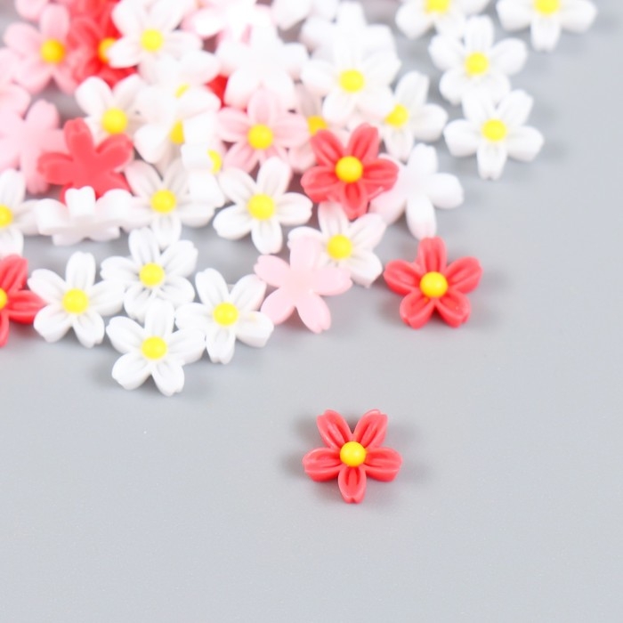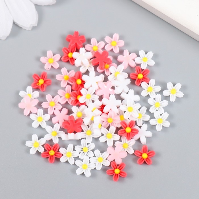 Декор для творчества пластик "Незабудки белые, красные, розовые"набор 70 шт 0,8х0,8 см