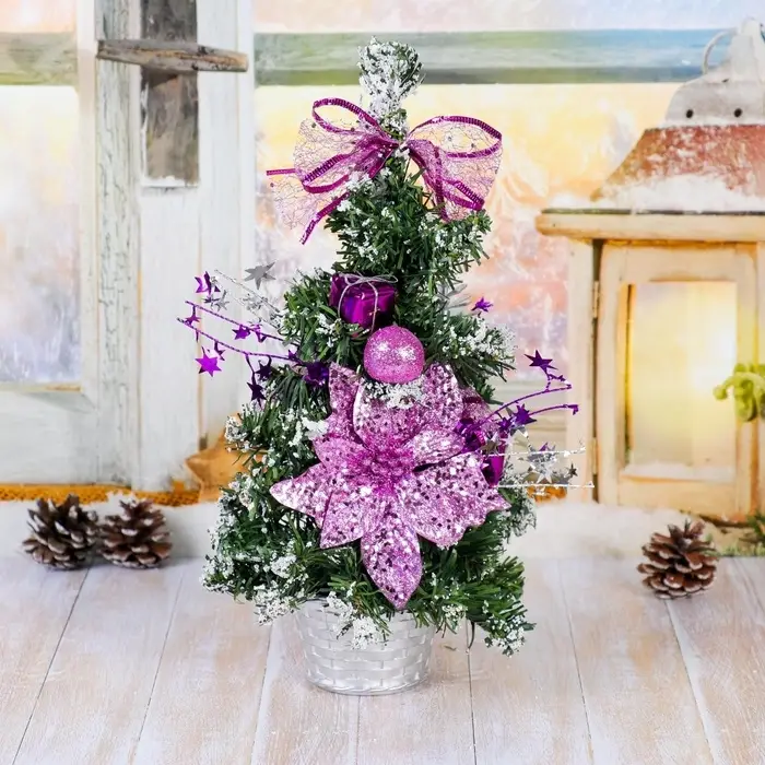 Искусственная ёлка настольная «Зимнее волшебство. Зимний лес» 27 см, ветки ПВХ отгибаются, сиреневая