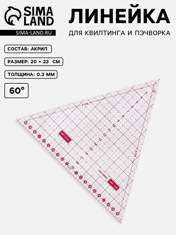 Линейка для квилтинга и пэчворка «Треугольник» 60°, 20×23×0.3 см