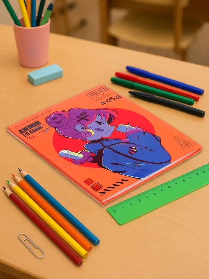 - Яркий неоновый рисунок ”Девочка” создаёт индивидуальность и добавляет визуального интереса к учебным материалам.
