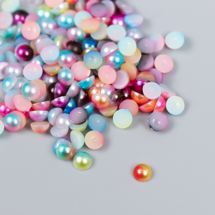 Декор "Полубусины и стразы. Градиент разноцветный" d=4 мм 10г 200 шт 5х2,5 см МИКС