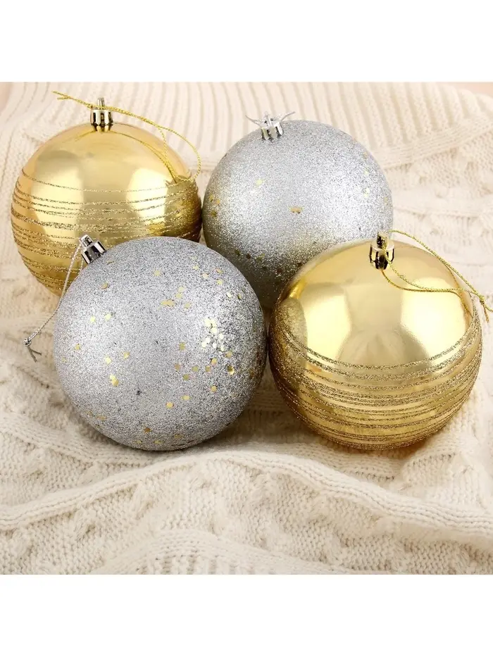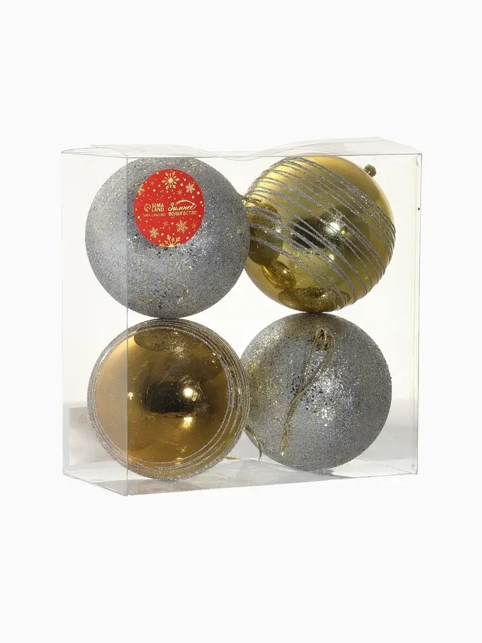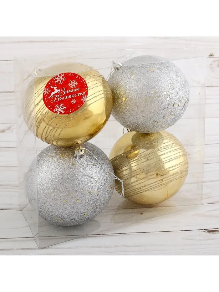 Ёлочные игрушки «Айола», шары новогодние, d=10 см, набор 4 шт., золотисто-серебристый