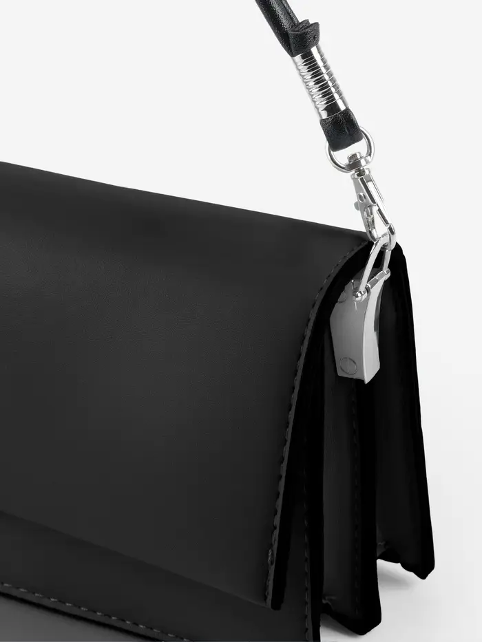 - Цвет — черный с серебряной фурнитурой — универсальный и стильный.