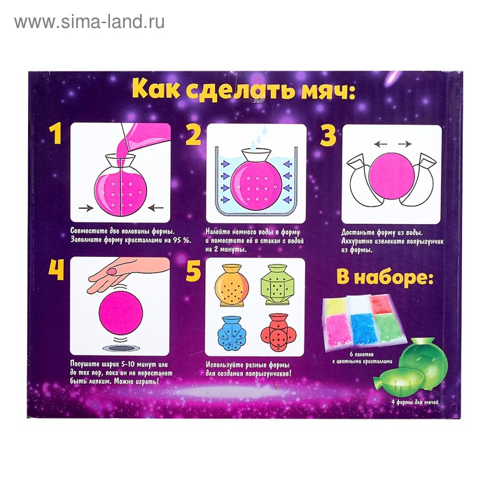 С набором «Прыгающие мячи» ребёнок проведёт химический опыт и создаст прыгающий шарик своими руками.