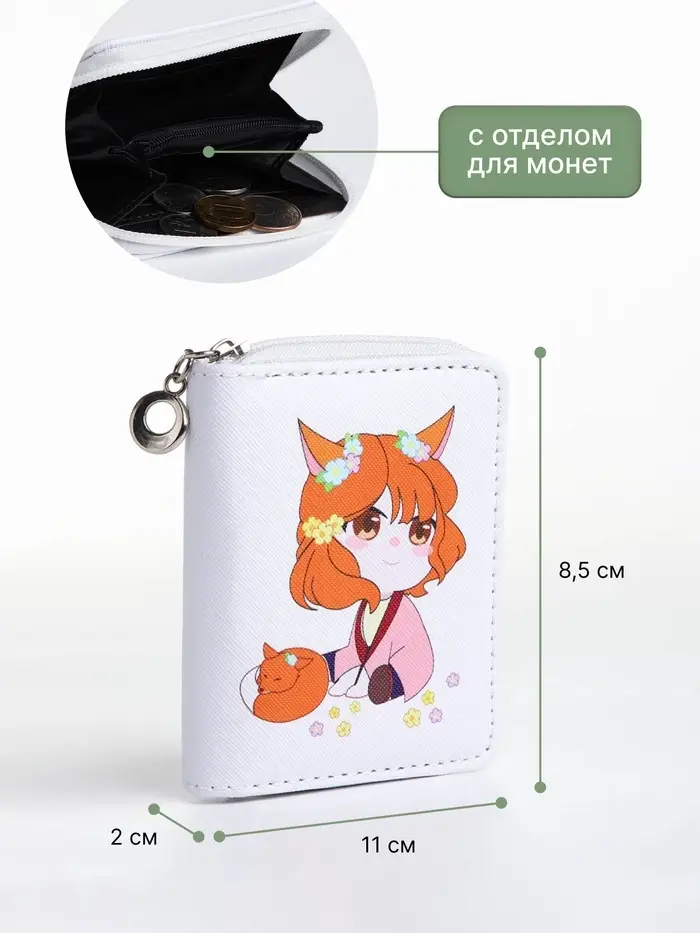 Кошелёк детский на молнии Выбражулька «Лисичка», белый