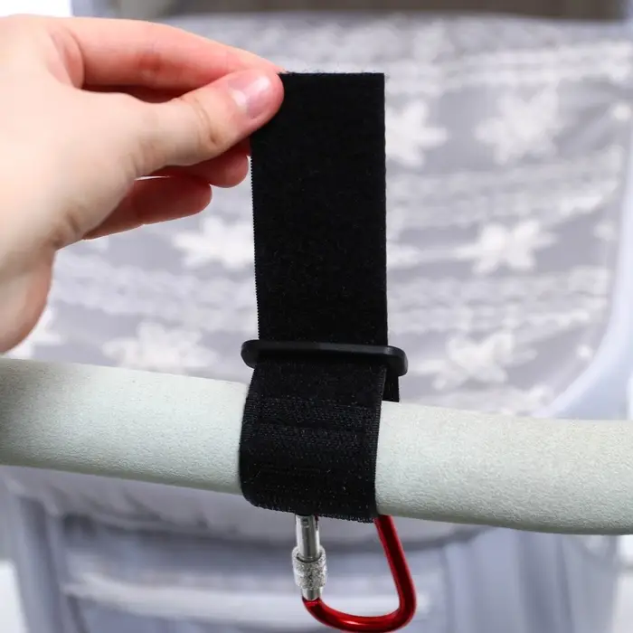 Универсальный карабин на липучке — маленький, но очень полезный аксессуар для мам. Его главное преимущество — простота крепления к разнообразным поверхностям: ручкам колясок, рулям велосипедов, мопедов и квадроциклов. С карабином легко организовать пространство вокруг себя: закрепить сумку на коляске во время прогулки, в машине он поможет разместить сумки и пакеты, если зафиксировать его на подголовнике. Практичность, надёжность и универсальность в одном небольшом приспособлении.