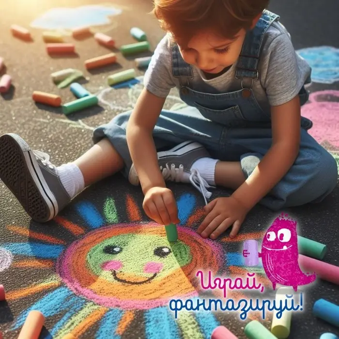 Рисовать на асфальте куда приятнее, чем на бумаге. Большой набор мелков для рисования поможет ребёнку в этом деле!