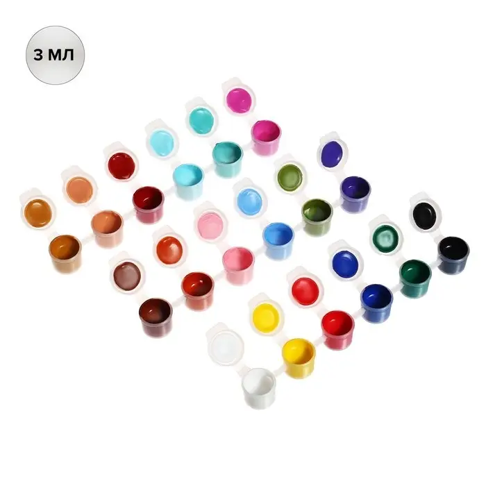 Художественные акриловые краски объемом банки 3 мл, предназначены для разных художественных, декоративных и дизайнерских работ, особенно популярны для рисования картин по номерам. Красками можно работать практически на любой поверхности (бумага, картон, грунтованный холст, дерево, металл, кожа и других).