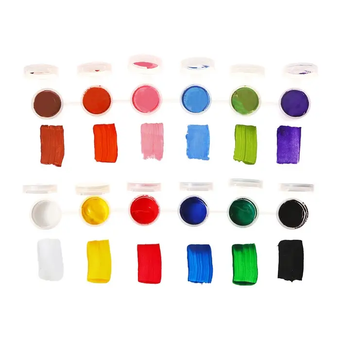 Краски морозостойкие: хранении и транспортировка не ниже - 50 градусов. Взаимодействует с различными поверхностями; В меру густая, не требует разведения водой; Быстро высыхает на поверхности, образуя плотный матовый слой; Цвета остаются насыщенными; Краски хорошо смешиваются друг с другом; Баночки плотно закрываются и предотвращают попадание воздуха; Безопасны для детей. Разбавляются водой и акриловыми связующими (высохшие краски не растворяются); Для достижения необходимой консистенции используйте загустители или разбавители для акриловых красок.