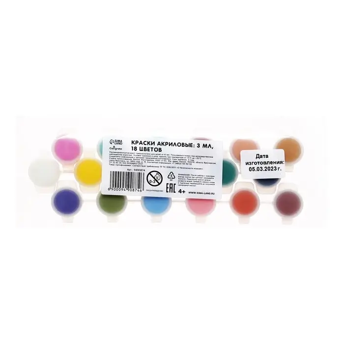 Краска акриловая, набор 18 цветов × 3 мл, Calligrata, морозостойкие, в пакете