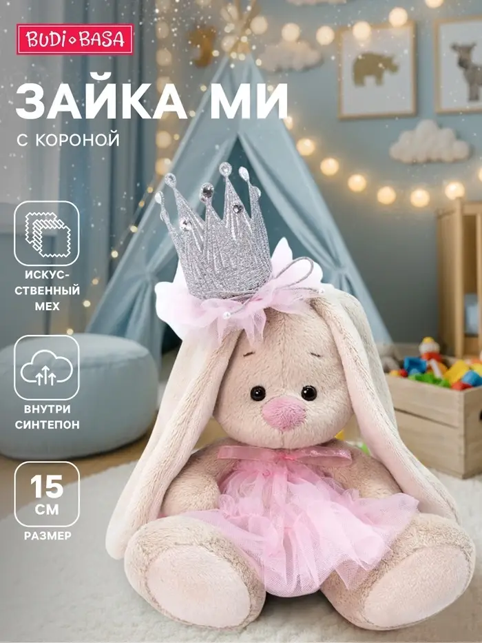 Мягкая игрушка «Зайка Ми с короной», 15 см