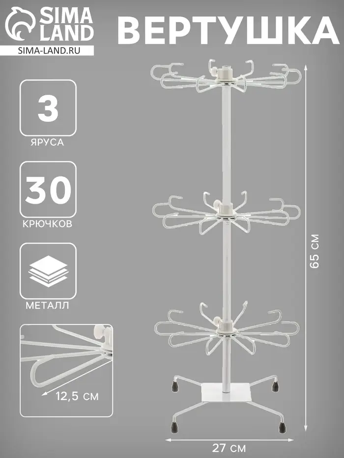 Вертушка, 3 яруса по 10 крючков, 27×65, белая
