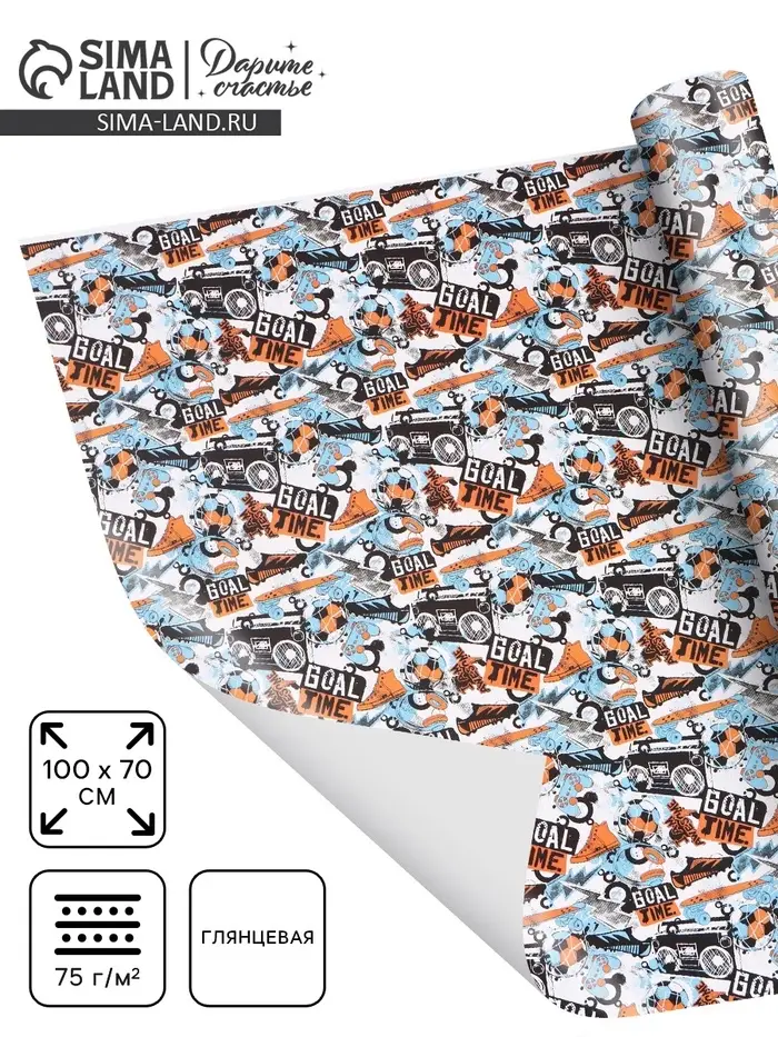Бумага упаковочная «Футбол», глянец, 70×100 см, 1 лист