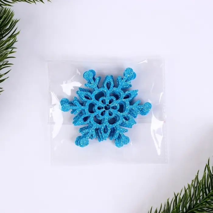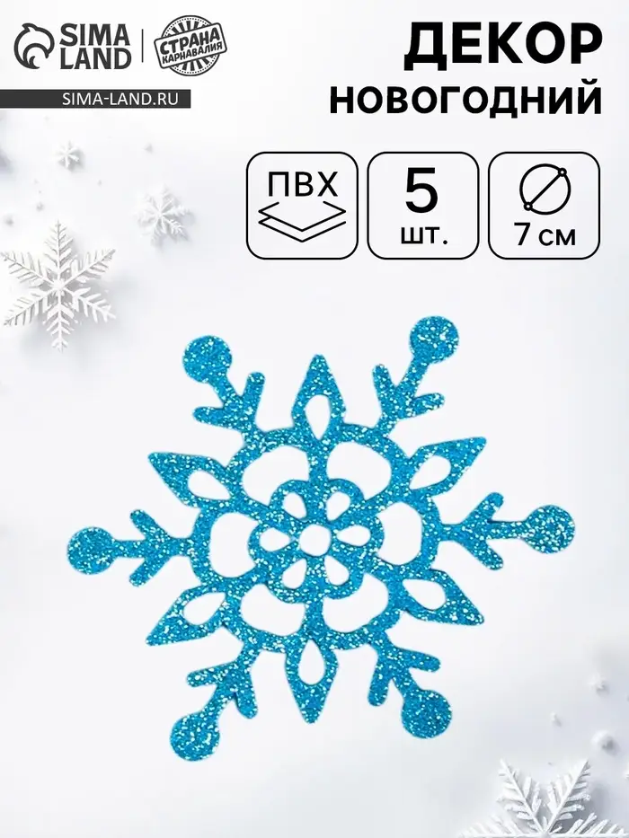 Новый год — самый волшебный праздник в году, и в этот день всё должно быть таким же сказочным и чудесным, особенно декор. В наборе 5 голубых снежинок диаметром 7 см.