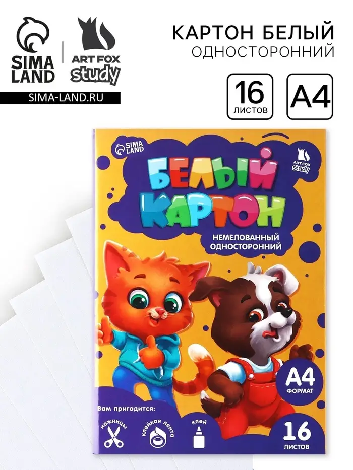 Белый картон из серии «Персонажи», торговой марки ArtFox STUDY, идеально подойдет для квиллинга, аппликации и изготовления поделок. Картон имеет приятную на ощупь поверхность, листы плотные, что позволяет использовать их для детского творчества.