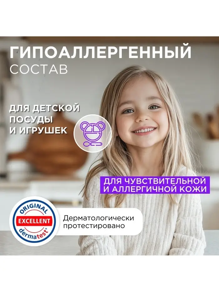 Он полностью смывается водой и не оставляет следов на посуде. Комплекс биоразлагаемых ПАВ из растительного масла и энзимов эффективно удаляет жир, сложные загрязнения и запахи даже в холодной воде, придавая посуде зеркальный блеск.
