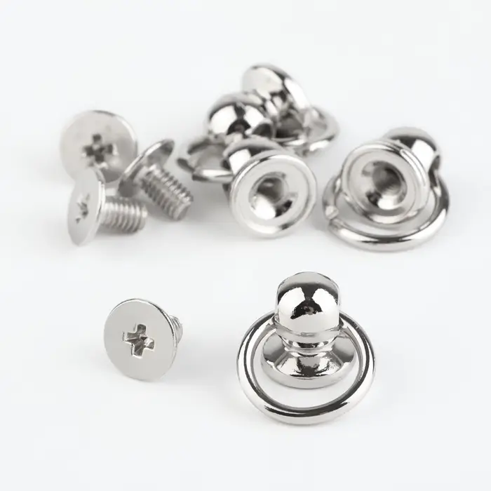 Кобурный винт с кольцом пригодится для установки сумочной фурнитуры, поэтому его ещё называют «ручкодержателем». Также изделие можно использовать в качестве застёжки на браслетах, ремнях и других изделиях из кожи.