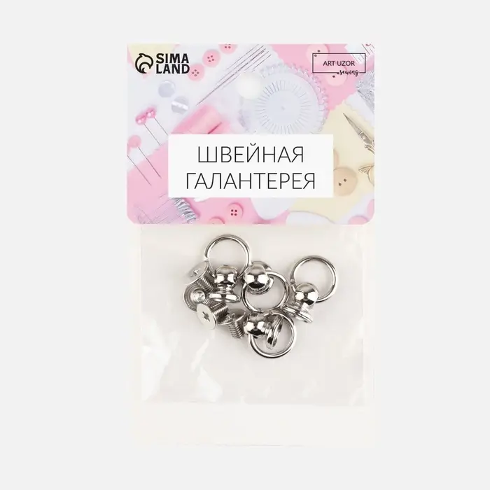 Кобурный винт d=6 мм, с кольцом d=8 мм, 4 шт., цвет серебряный
