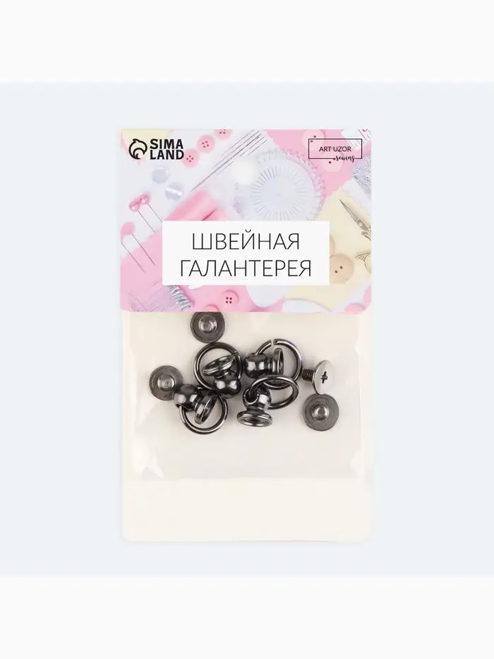 В наборе 4 штуки цвета чёрный никель. Диаметр шляпки 6 мм; диаметр основания 8 мм; высота 9 мм.