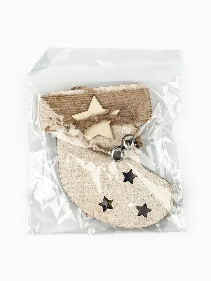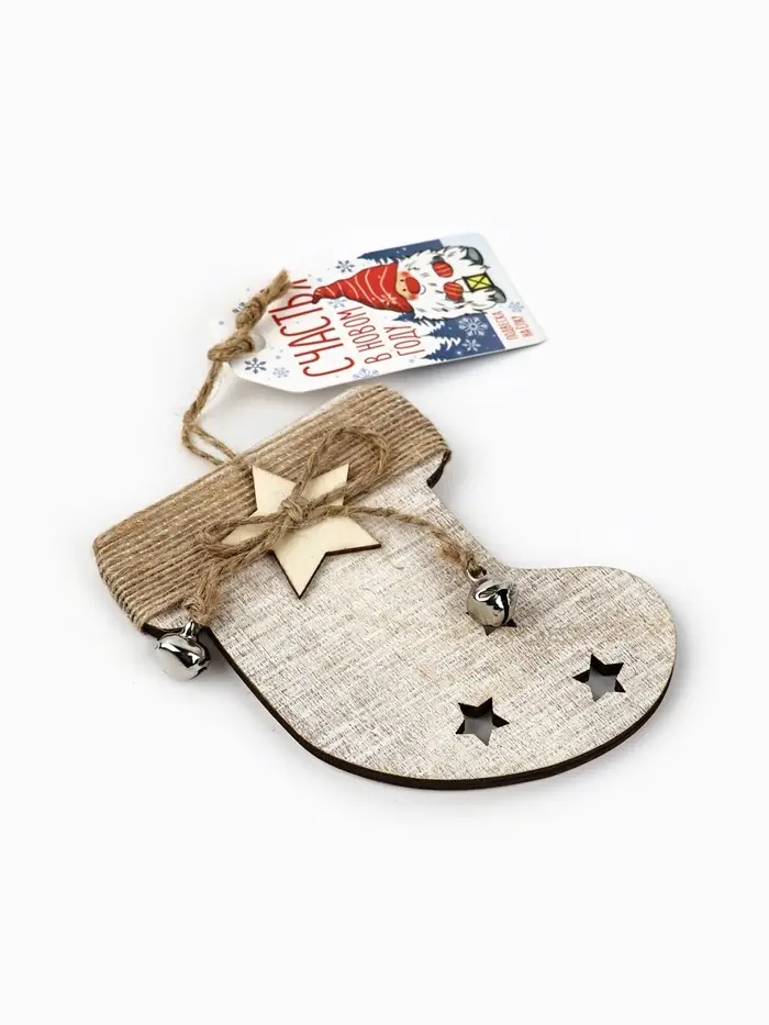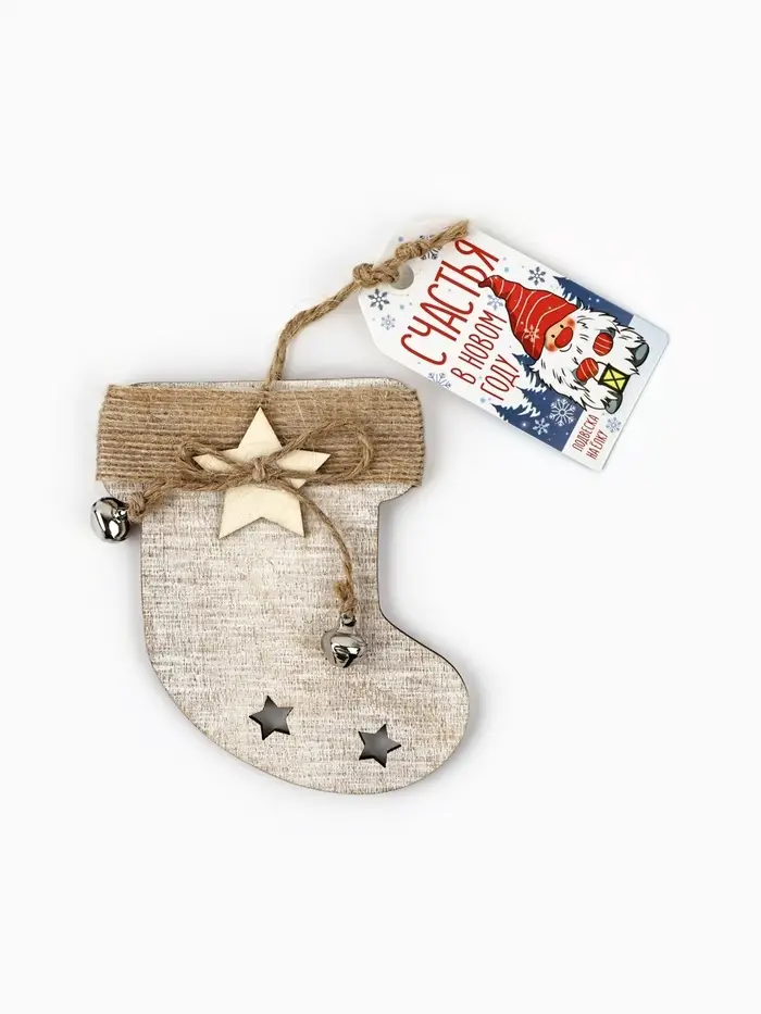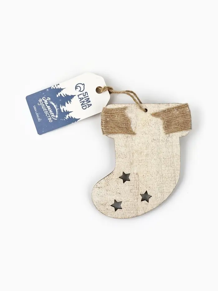 Ёлочная игрушка новогодняя «Носочек», дерево, 9×10 см