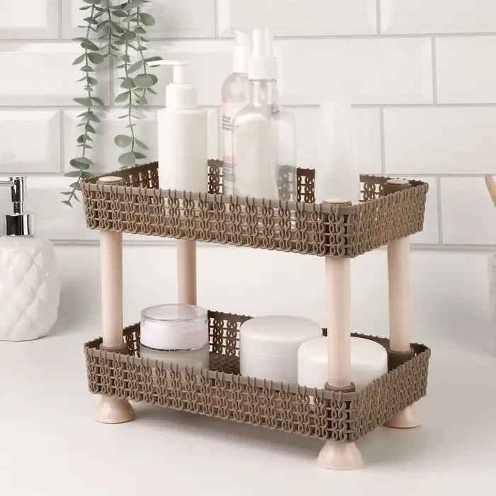 Двухуровневый органайзер для хранения маникюрных и косметических принадлежностей — это идеальное решение для тех, кто ценит порядок и удобство в уходе за собой. Выполненный в стильных коричневых и бежевых тонах, он гармонично впишется в любой интерьер и поможет рационально использовать пространство.