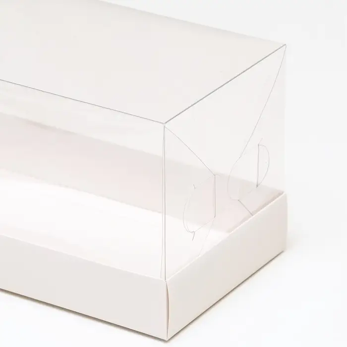 Просторная витрина для вашего десерта! Большая кондитерская коробка с прозрачной крышкой — это упаковка для рулетов и выпечки увеличенного размера. Полностью прозрачный верх создает эффект профессиональной витрины, демонстрируя содержимое со всех сторон.