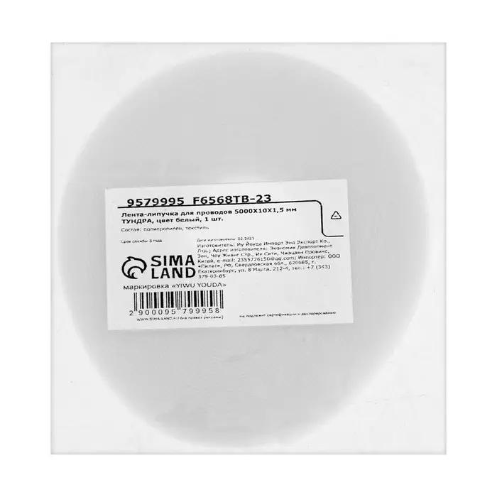 Лента-липучка для проводов 5000×10×1.5 мм ТУНДРА, белая, 1 шт.