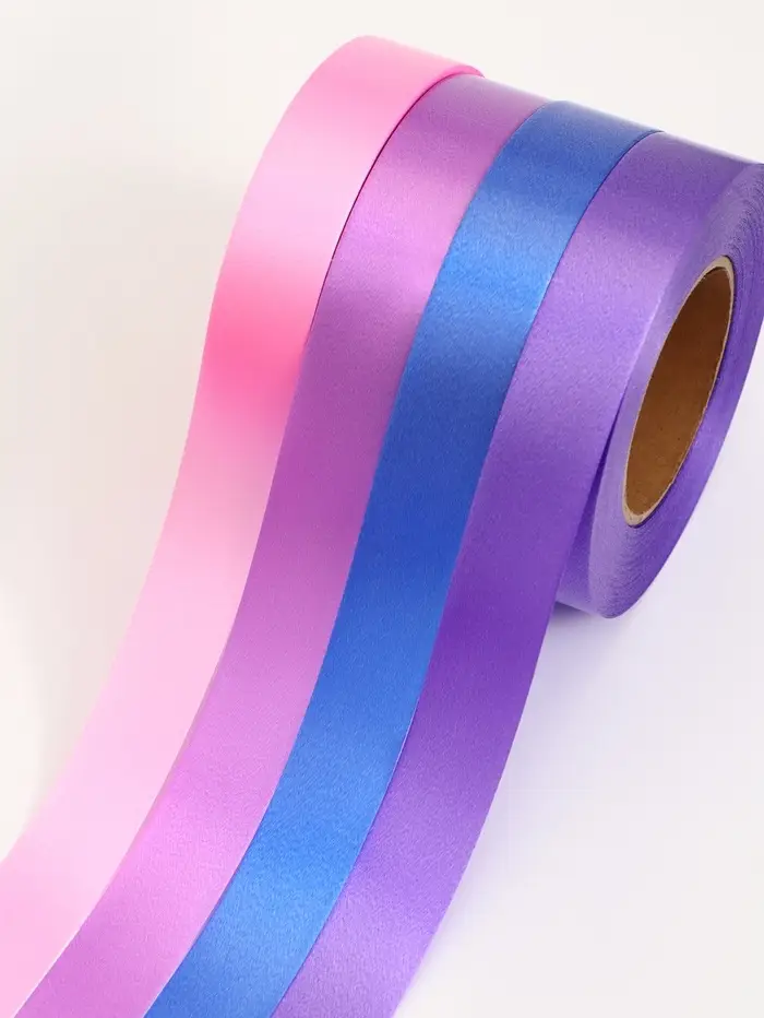 - Глянцевый полипропилен: Материал приятно блестит, не выцветает со временем, не рвется при натяжении и устойчив к влаге. Лента легко режется ножницами и не осыпается на срезах.