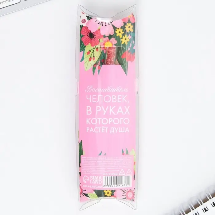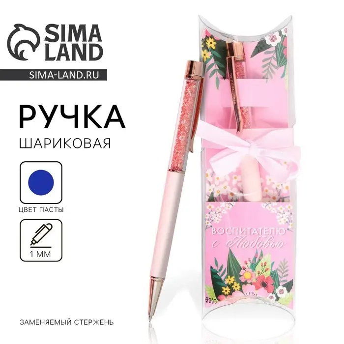Ручка шариковая, синяя паста, 1 мм, пластик, автоматическая, в тубусе «Любимому воспитателю»