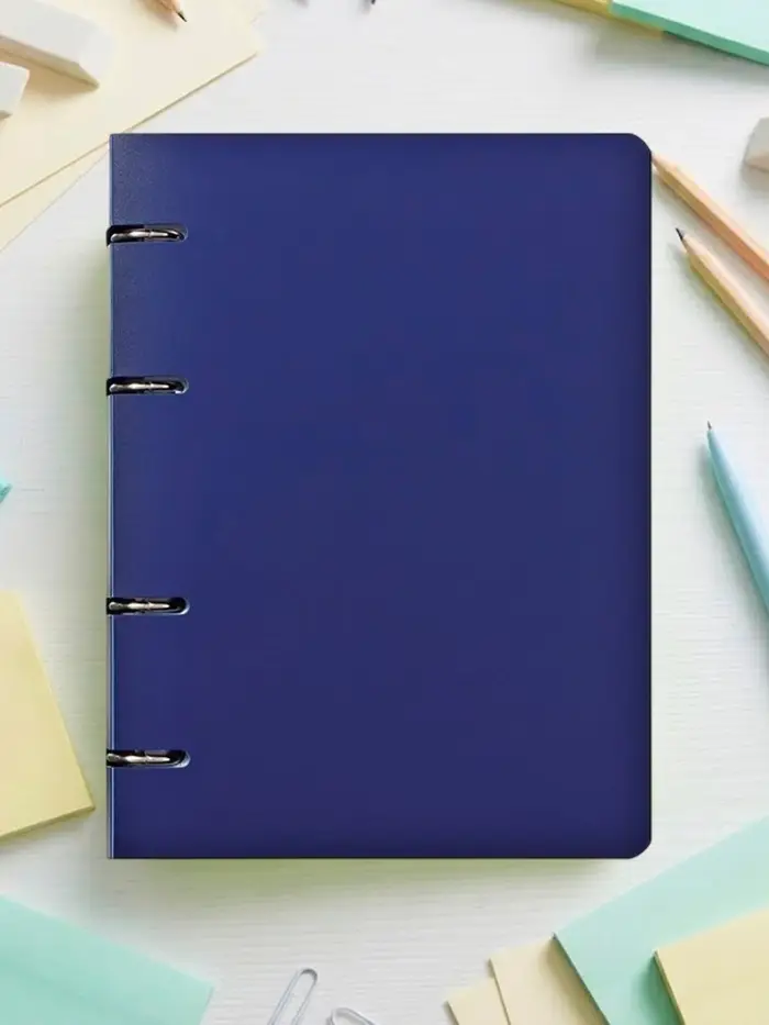 Синяя тетрадь на кольцах — это организованность и порядок в записях. Твердая пластиковая обложка сохраняет ее аккуратный вид, а сменный блок дает вам свободу систематизировать конспекты, планы и заметки так, как вы этого хотите.