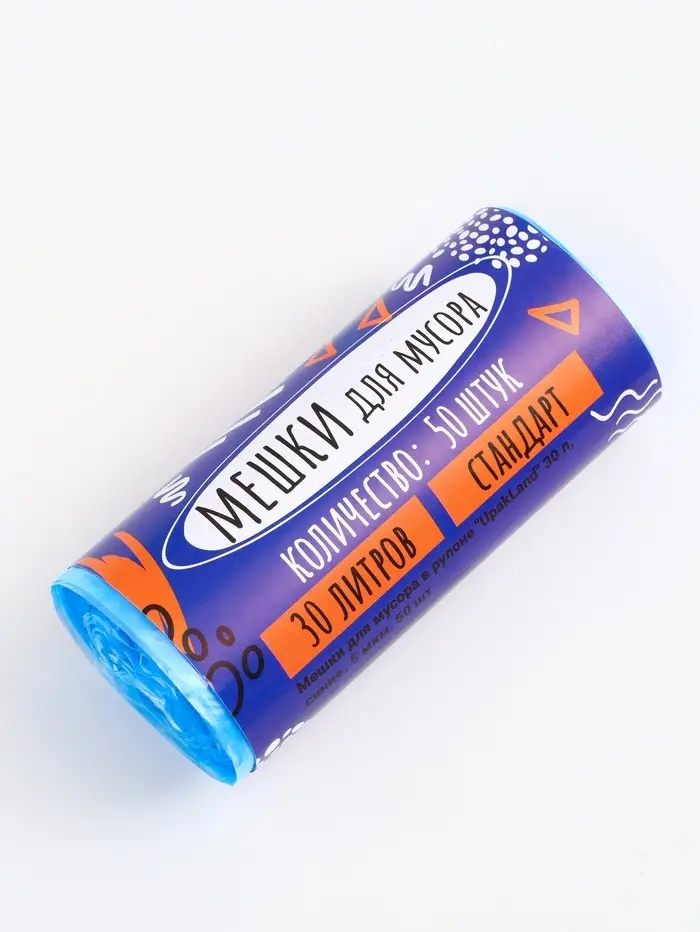 Мешки для мусора в рулоне «UPAK LAND» 30 л, синие, ПНД, 5 мкм, 50 шт., 45×54 см