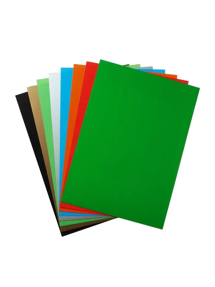 Цветной картон используют для поздравительных открыток, бумажных фигур, декоративных панно и учебных макетов. Двусторонние оттенки помогают сочетать цвета в одной работе, а плотный материал сохраняет форму после вырезания и склеивания. Набор подходит для детей и взрослых, когда творчество превращается в игру, обучение и развитие воображения.